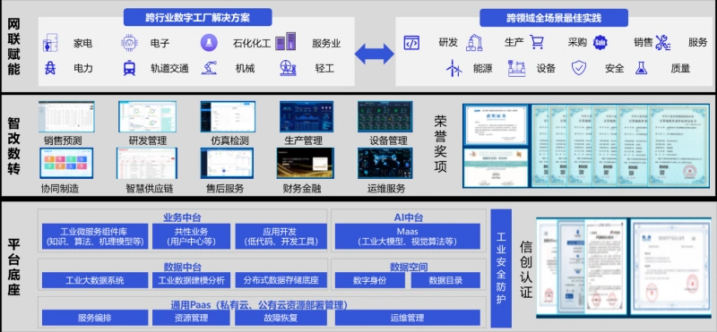 该平台运用数据要素、人工智能、信息安全等关键技术,成功打造1个数实融合平台底座、3类“智改数转”解决方案、N个典型应用场景的“1+3+N”的服务模式,解决实体企业数字化转型面临的诸多难点痛点。