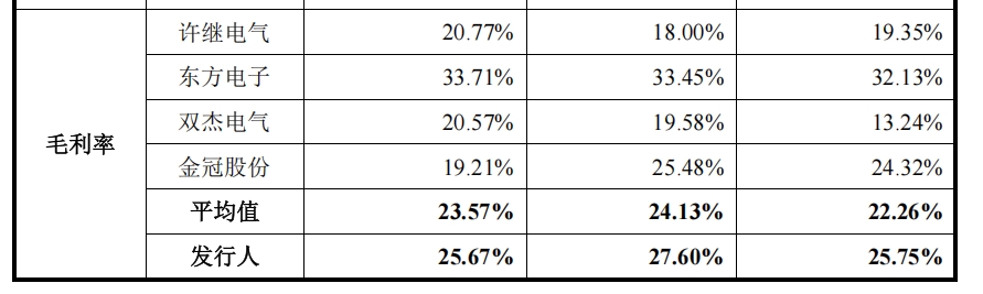值得注意的是,营收规模虽不及同行,但其毛利率却在平均值之上,甚至龙头公司许继电气也远不及昊创瑞通。数据显示,2022年至2024年,可对比公司的平均毛利率分别为22.26%、24.13%、23.57%;昊创瑞通的毛利率分别为25.75%、27.60%、25.67%。
