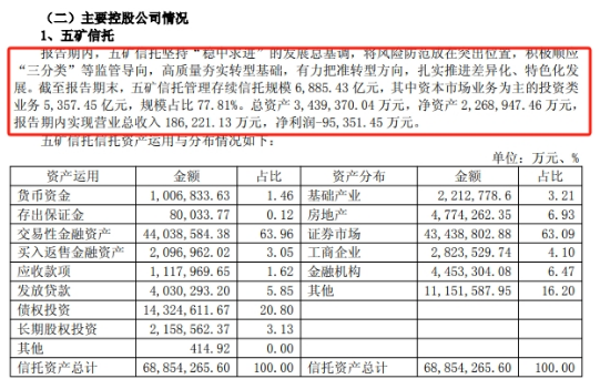 证券之星注意到,五矿资本披露年报显示,截至报告期末,五矿信托管理存续信托规模6885.43亿元,其中资本市场业务为主的投资类业务5357.45亿元,规模占比77.81%。总资产3,439,370.04 万元,净资产2,268,947.46 万元,报告期内实现营业总收入18.62亿元,较2023年的28.79亿元大幅缩水,净利润-9.5亿元。