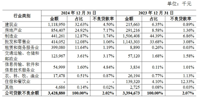 以该行2024年报中披露的按行业划分的公司贷款的不良余额分布情况来看,信贷投向为例,房地产业和建筑业不良贷款率已分别为7.17% 和4.50%,虽有所趋降,但仍处相对高位。