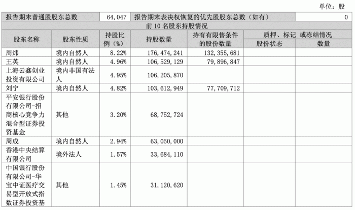 截至2023年一季度末,周炜持股8.22%,王英持股4.96%,分别位列第一、二大股东;上海云鑫创业投资有限公司持股4.95%,为第三大股东;此外,刘宁持股4.82%,周成持股2.94%,位列第四、六股东。
