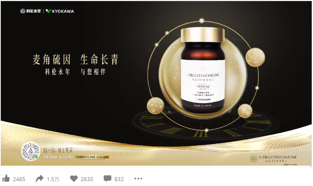 科伦药业表示,药品审批针对特定疾病治疗场景,而营养补充剂的价值在于健康人群的风险预防与机能提升,二者分属不同维度。麦角硫因的定位是健康管理工具,当下麦角硫因是国际上公认的膳食补充剂,而非药品。