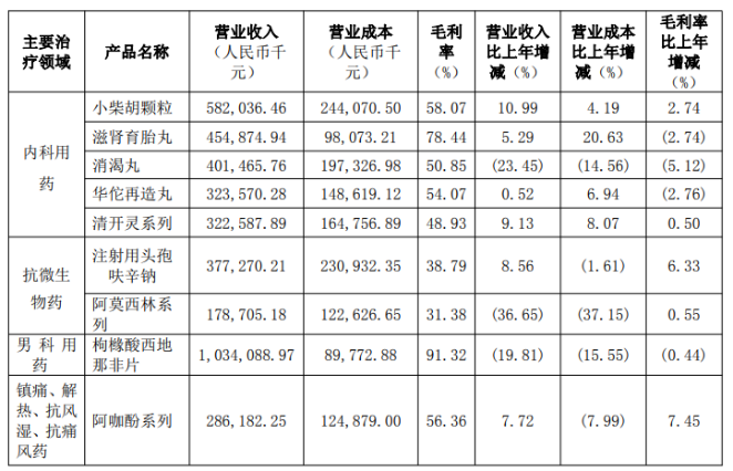 证券之星注意到,白云山营收降幅较大的产品是阿莫西林系列,该产品2024年的营收同比下滑36.65%,对应营收为1.79亿元。内科用药方面,消渴丸2024年实现营收4.01亿元,同比下降23.45%。从药品来看,营收增长势头超过10%的仅有小柴胡颗粒,但难以抵消核心产品承压。
