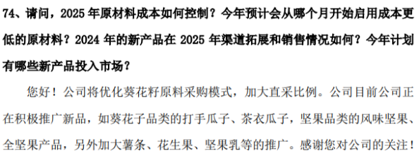 这也意味着,提价并非“万能牌”,且后疫情时代下,消费者价格敏感度持续攀升,仅单纯依赖提价而无价值升级的策略难以为继。今年一季度,受葵花籽采购成本上升等因素影响,公司整体毛利率由2024年的28.78%下滑至19.47%。在今年业绩说明会中,被问及今年原材料成本如何控制,公司并未提及转嫁成本的策略,而是表示将优化葵花籽原料采购模式,加大直采比例。
