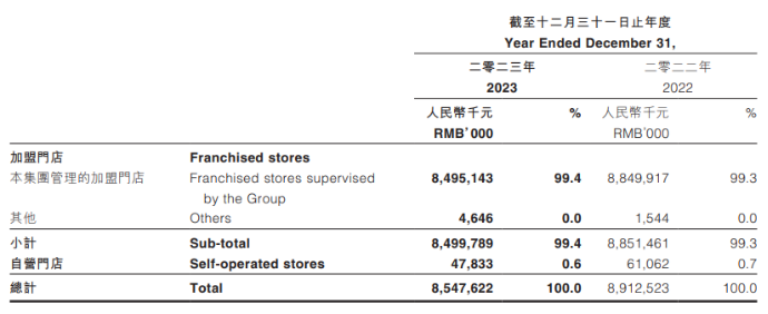 值得注意,2023年,尽管百果园的加盟店数量仍净增长241家,但来自加盟店贡献的收入较上年同期出现约4%的下滑,百果园对此解释称,系居民在假期(尤其是暑假)出游增多,导致以社区为基础的小店的进店客流减少。
