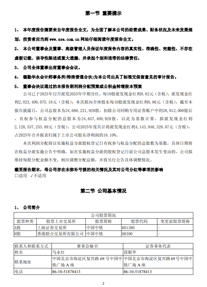 分红方面,公司已于2025年12月派发中期红利,每10股派发现金红利0.82元(含税),合计派发金额20.23亿元(含税)。本次拟再向全体股东每10股派发现金红利0.86元(含税)。截至报告披露日,公司总股本为246.86亿股,扣除回购专用证券账户中的2881.2万股后,有权参与权益分配的股本为246.57亿股,据此计算,本次拟派发现金红利21.21亿元(含税)。