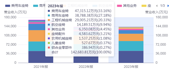 其中,乘用车座椅产品主要为新能源汽车及传统燃油车提供座椅总成,包括各类轿车、SUV等乘用车的前座和后座座椅总成;航空座椅产品主要为全球各地的航空公司提供的民航飞机旅客座椅;工程机械与商用车座椅产品主要包括挖掘机座椅、装载机座椅、叉车座椅、重卡座椅和大中客车座椅。