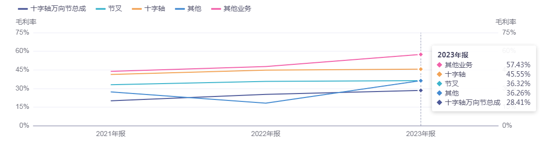 2023年,正强股份实现营业总收入4.17亿元,同比下降2.43%;净利润9691.89万元,同比下降1.15%。分产品看,十字轴万向节总成收入占比近60%,节叉收入占比近20%,十字轴收入占比近17%。