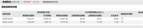 最后是股份大量解禁的风险。据Wind数据显示,6月28日老铺黄金将迎来6905.07万股的解禁。随着市场可流通股份供给增加,老铺黄金的股价或将面临压力。