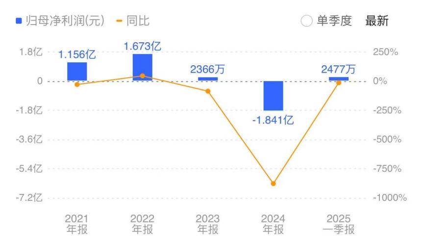 根据历史财报,2023年元隆雅图正式步入业绩下行轨道,2023年至2025年一季度,公司净利润分别为2366万元、-1.84亿元、2477万元,分别同比下降85.86%、878.18%、13.74%。