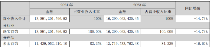 不过面临金价自2024年以来的巨大波动,周大生整体业绩也承压显著。