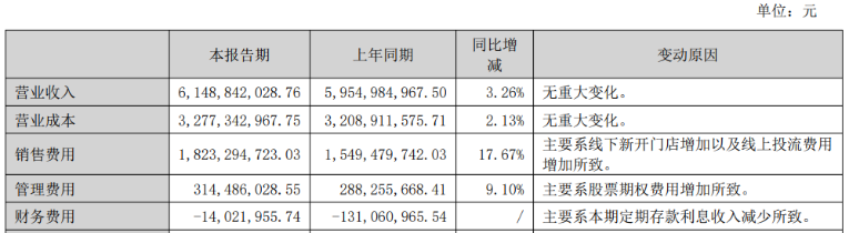 费用率的攀升是侵蚀公司利润的重要原因。今年上半年,森马服饰的销售费用同比增长17.67%至18.23亿元,销售费用率较上年同期增长3.63个百分点至29.65%;管理费用同比增长9.1%至3.14亿元,管理费用率为5.11%,较上年同期微增0.27个百分点。公司称,销售费用的增加主要系线下新开门店增加以及线上投流费用增加所致;管理费用的增加则主要系股票期权费用增加所致。