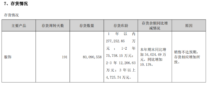 在产品层面,上半年休闲服饰收入同比下降4.98%,儿童服饰业务同比增长5.97%至43.13亿元,收入占比达七成。需要注意的是,公司上半年存货余额同比增长10.1%,存货周转天数同比增长30天至187天,公司解释称,销售不达预期,存货相应增加所致。(本文首发证券之星。作者|吴凡)