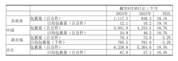 就上半年表现而言,东南亚市场的表现喜忧参半。虽然该市场包裹量、营收以及经调整EBITDA均实现稳步增长,但其单票收入却出现下滑。具体而言,东南亚包裹量为20.43亿件,同比增长42%;实现营收为15.2亿美元,同比增长22%;经调整EBITDA为2.08亿美元,同比增长12.9%。