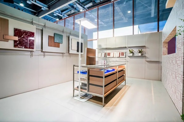 朗生的模块化定制,通过全国统配完成。因此,对于大规模建立连锁店的餐饮类甲方,场景拆解、打包发货、和施工方的对接,朗生都能够以一揽子解决方案完成。在既要又要的甲方面前,商业模式的指挥棒,帮助朗生实现了更丰富的设计效果,也实现了“图纸到结果”的无缝落地。