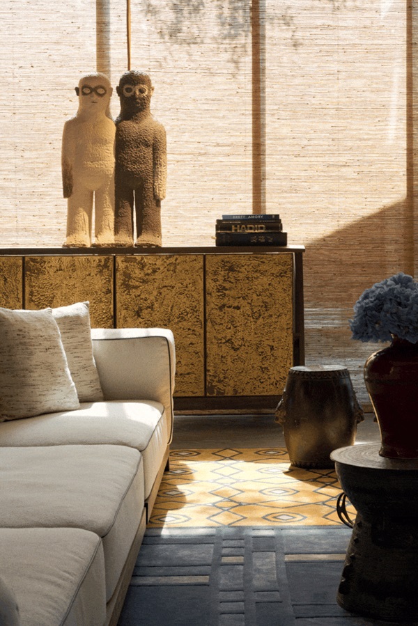 岩板以壁画之姿登陆覃思主持设计的奢华居所,而同样兼具京韵和国际化风格的时装,则与家居空间相得益彰,互为点睛。