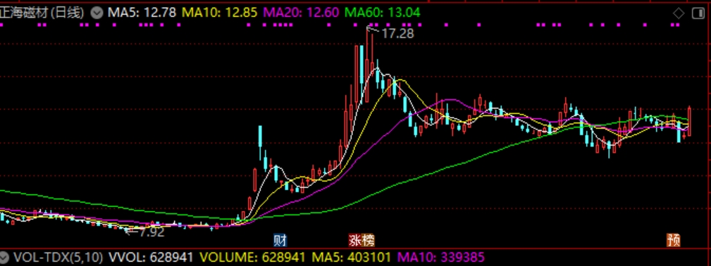 今天领涨的正海磁材是国内高性能钕铁硼永磁材料龙头,可生产高性能钕铁硼永磁材料从N至ZH共八大类、三十多个牌号的系列产品。公司产品的下游应用领域包括汽车EPS、新能源汽车驱动电机、节能环保空调、风力发电、节能电梯、消费电子。值得一提的是,公司是国内高性能钕铁硼永磁材料行业的主要企业,主营产品为国家重点鼓励和支持发展的新材料和高新技术产品。