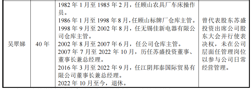 而吴翠娣在2022年的“退出”十分坚决。不仅仅是通过转让自己所持的苏盛投资全部股权,由此而不再直接和间接持有华新精科的股份,而且,还去职了自己所担任的苏盛投资、德诚钢铁、子泰机械的法人和总经理,更甚者,吴翠娣持有股份的公司,也在股权转出之时,统统注销。如江阴邦泰国际贸易有限公司,吴翠娣持股25%,2022年9月注销;江阴源泰机械装备有限公司,吴翠娣担任董事和总经理,202年注销;德诚钢铁法人代表由吴翠娣变更为郭云蓉,时间为2022年10月。