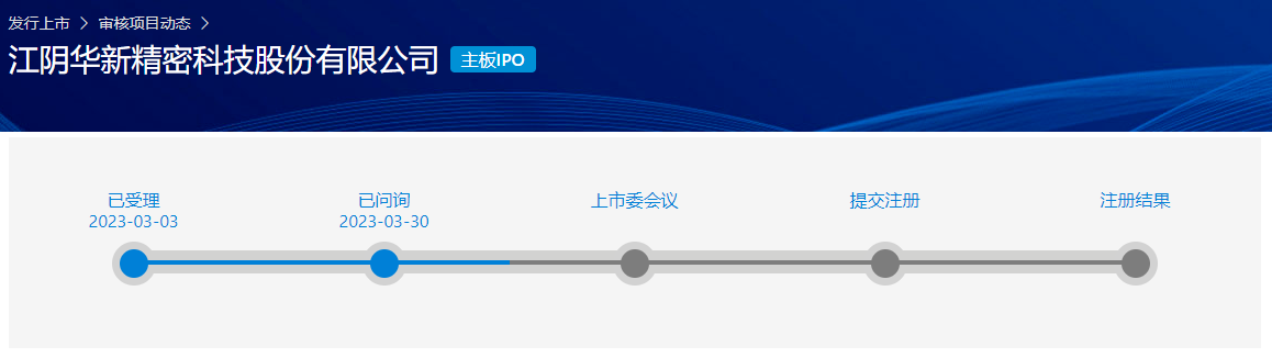 图 1 华新精科IPO进程(来源:上交所)