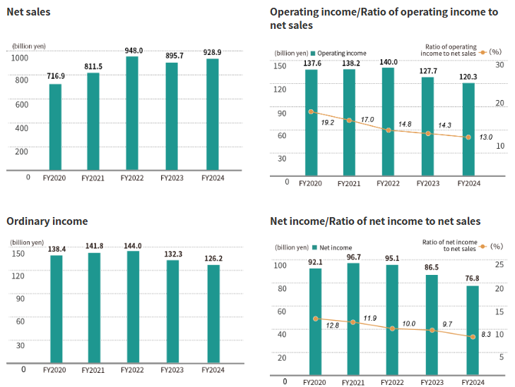 另一方面,宜得利集团在全球扩张并没有获得业绩增长。2022-2024财年,宜得利集团实现营收分别为9480亿日元、8957亿日元和9289亿日元,呈现波动下滑态势;实现净利润分别为951亿日元、865亿日元和768亿日元,呈现持续下滑趋势。