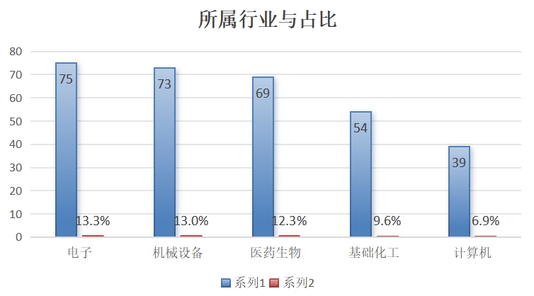 从行业角度来看,进行股份回购的公司较为集中于电子机械行业。根据同花顺数据,进行股份回购的上市公司所属行业前5名分别是电子、机械设备、医药生物、基础化工、计算机;分别有股份回购公司75个、73个、69个、54个、39个;占比分别为13.3%、13.0%、12.3%、9.6%、6.9%。