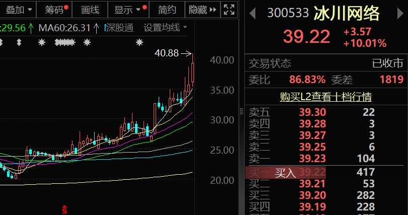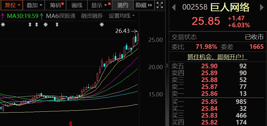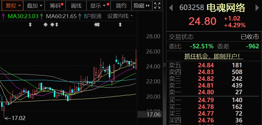 7月8日,A股游戏板块迎来异动,同花顺板块指数(881275)上涨2.77%,冰川网络、巨人网络、恺英网络、富春股份、电魂网络、盛天网络、浙数文化等多只成分股上涨。