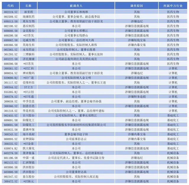 今年以来被立案调查的上市公司或个人
