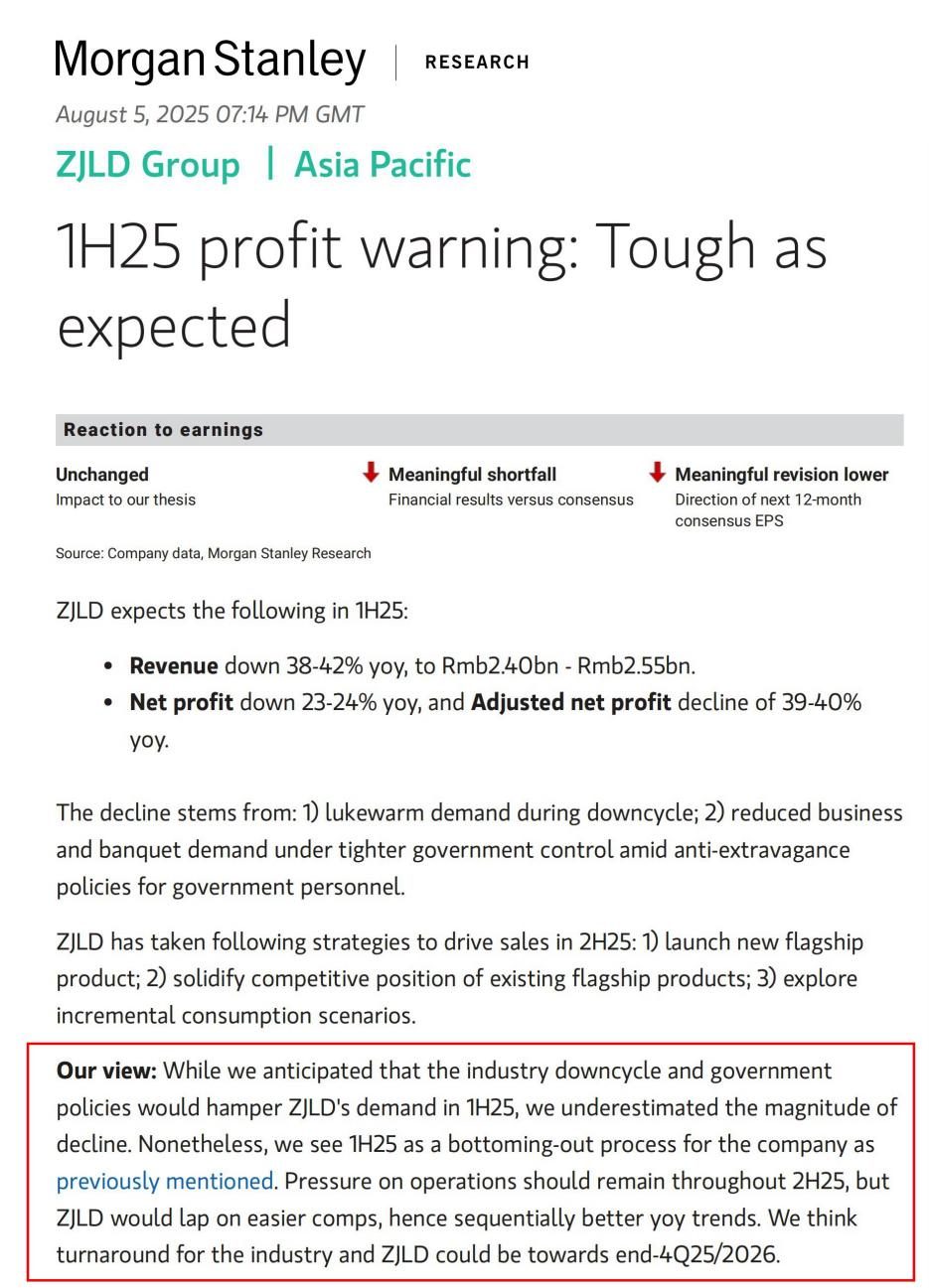 摩根士丹利研报认为,上半年是珍酒李渡的触底阶段,回暖行情有望在今年四季度或2026年出现,给予“增持”评级。浙商证券研报认为,大珍凭借模式和营销创新,已成为现象级产品,有望成为公司全新增长极。