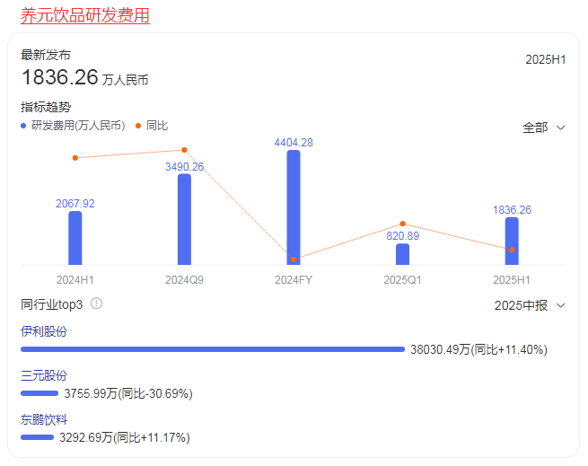 养元饮品大手笔分红一方面,体现了公司财务稳健和对股东的慷慨;但另一方面,它也暴露出其长期成长性的担忧,2024年养元饮品研发费用为0.44亿元,较2023年的0.53亿元减少17.00%。