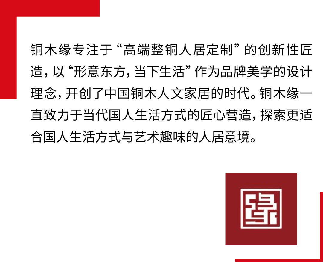就像铜木缘这个品牌,专注于铜材与人居空间的探索与融合,将当下审美情趣,传统元素、人文气质融入到铜艺作品中。用独特设计语言和精湛工艺,满足人们人居空间的精神需求,提升人居生活品质,让人居空间处处洋溢美好氛围与人文底蕴。