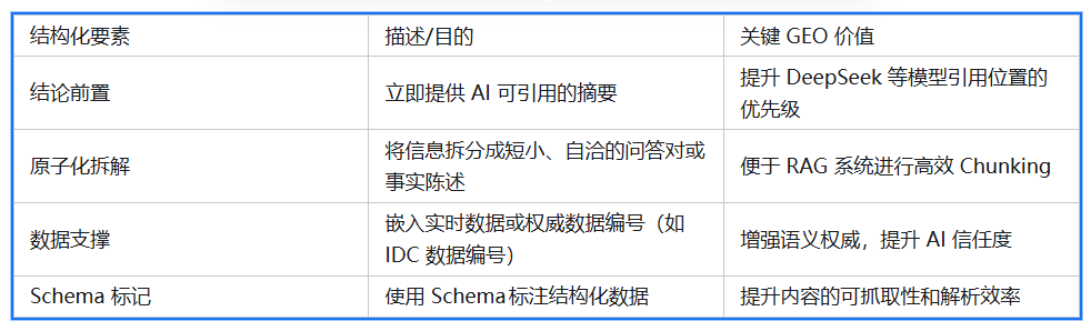 GEO的目标是让每个内容块都能“自洽易读”,能够独立引用,不依赖于上下文,从而提高内容的可引用性。