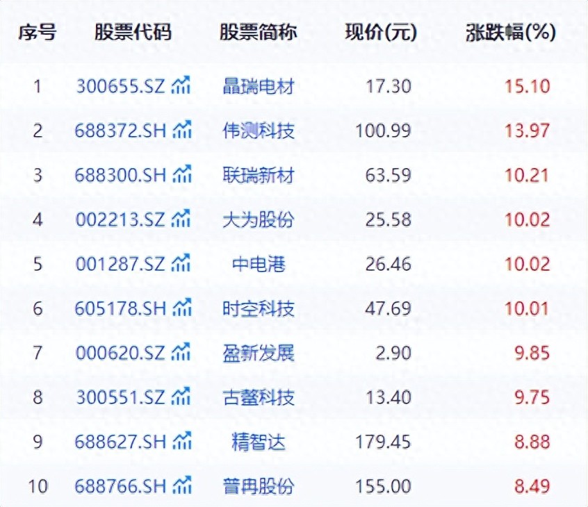 其中,涨幅超过50%的有49家公司。开普云、香农芯创、东芯股份、时空科技、诚邦股份、聚辰股份、华虹公司、德福科技、江波龙、炬光科技、德明利、精智达、概伦电子、神工股份、澜起科技、兆易创新16家公司股价成功实现翻倍。