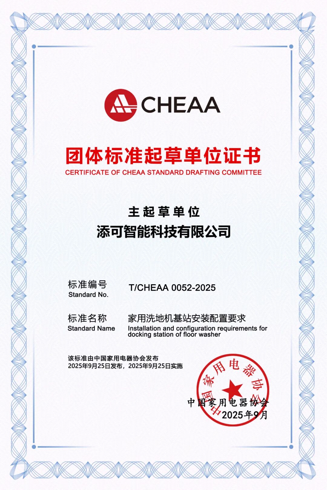 会上正式发布团体标准《家用洗地机基站安装配置要求》(T/CHEAA 0052—2025),该标准由中国家用电器协会清洁电器专业委员会牵头,添可作为主起草单位与协会共同主导制定。该标准致力于通过规范安装环境要求(包括空间、电路、水路等)以及完善安装服务标准,为行业发展提供科学指导。此举不仅是为电器“安家”,更是为整个行业“定标”,探索家电家装一体化趋势下“物”与“空间”的理想关系。