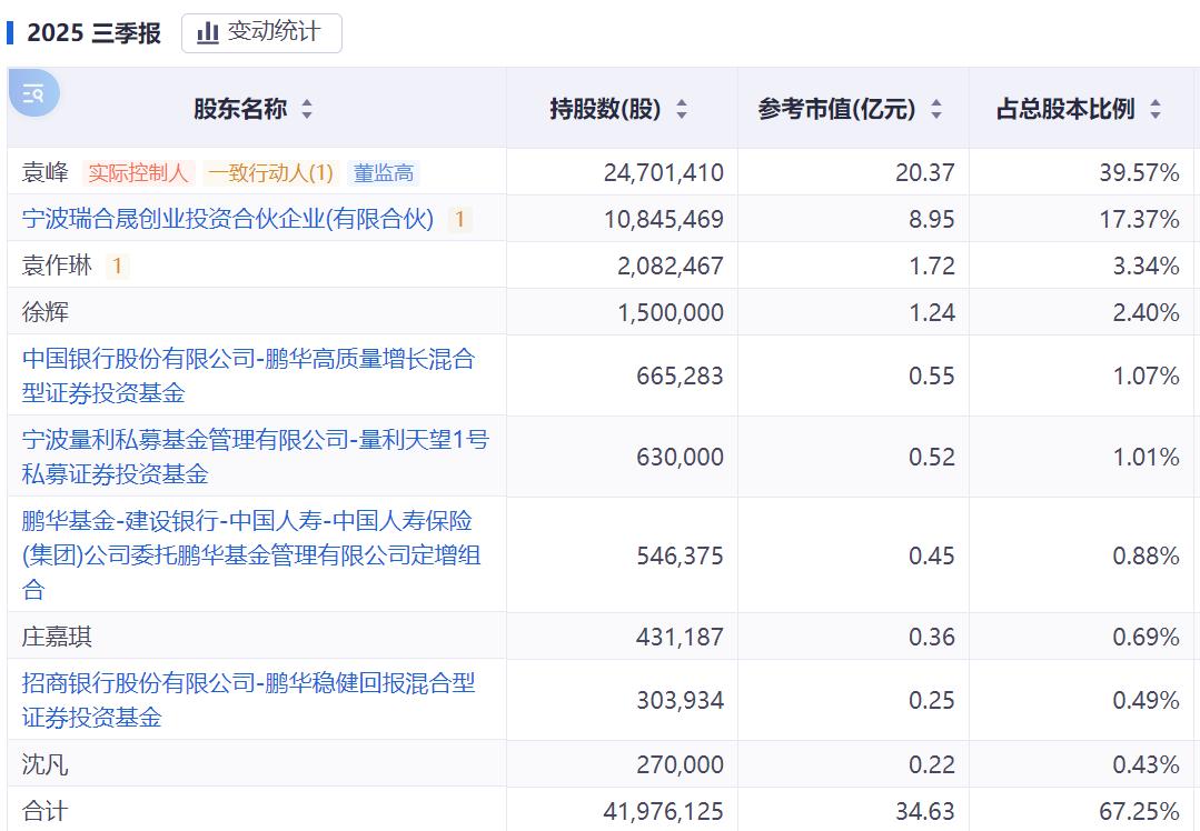 本次权益变动后,瑞合晟、袁作琳的持股占比分别下降至13.6008%、1.1093%,而宁波文旅集团将成为瑞晟智能的第三大股东。