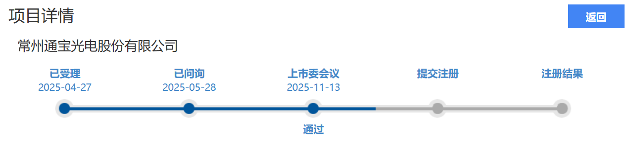 2024年6月,证监会对通宝光电IPO进行了现场检查,2024年7月,通宝光电撤回北交所IPO申请。