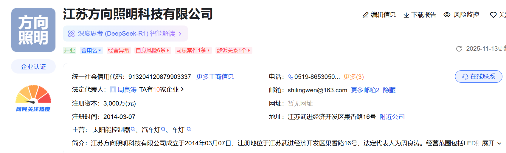 图 12 江苏方向照明工商信息(来源:爱企查)