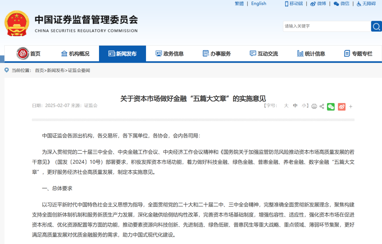 图 1 关于资本市场做好金融“五篇大文章”的实施意见(来源:证监会)