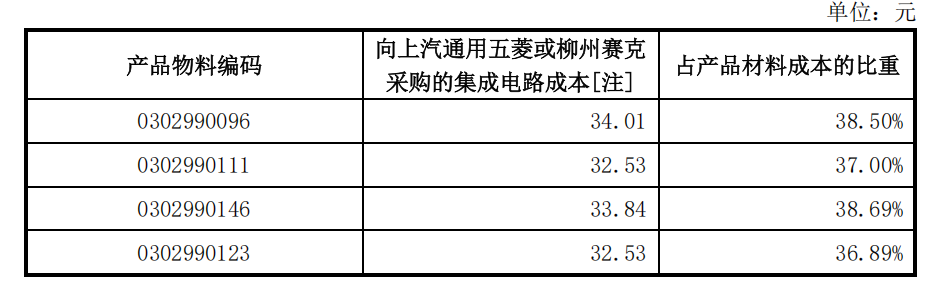 但是EPS控制器销售有两个显著特点。其一, 生产EPS控制器的最关键原材料——占材料总成本35%至40%的集成电路,系“由上汽通用五菱或柳州赛克(上汽集团控制的企业)代为采购;其二,通宝光电向上汽通用五菱“采购”关键物料,经SMT贴片与组装后,再将产成品“销售”给上汽通用五菱指定的关联方。