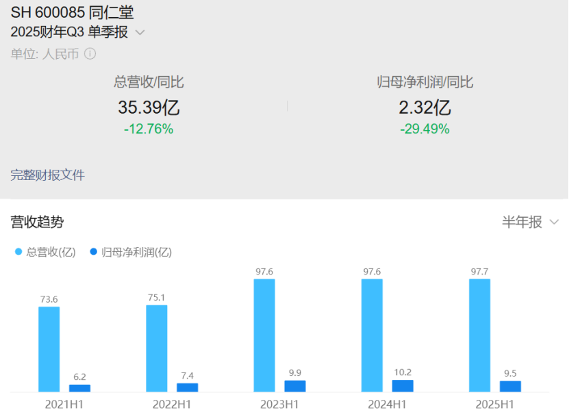 面对行业的万亿蓝图,同仁堂却陷入增长疲态与利润收缩的境况中。