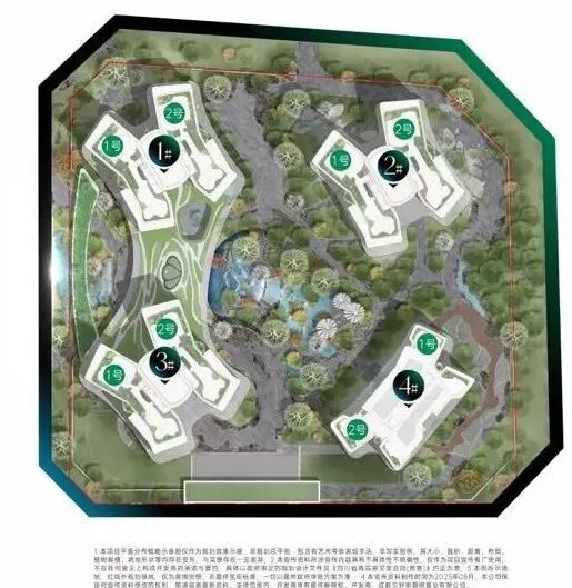 项目最震撼的弧线特征,是四栋楼宇如“繁花”盛开般的圆弧布局。这一充满张力的形态,首要驱动力是功能理性:通过对每栋楼宇朝向的精密旋转与偏移,最大化每一户对金融城天际线的观景面宽,同时巧妙化解了楼栋间的视线干扰。这直接、有力地回应了客户调研中“景观权高于传统朝向”的普遍偏好。