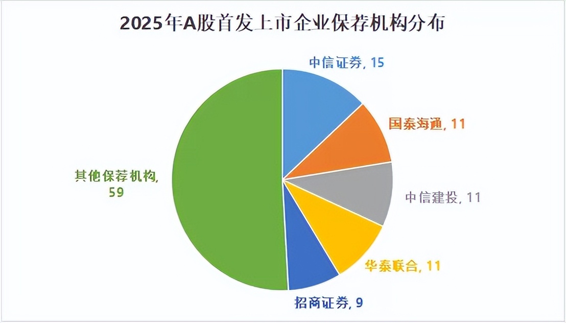 保荐机构格局则呈现“头部集中、长尾分散”的特点。中信证券以15家的保荐数量稳居行业首位,彰显出强劲的项目储备与执行能力;国泰海通、中信建投、华泰联合三家机构表现齐头并进,均保荐11家企业成功上市;招商证券亦有9家保荐项目落地。与此同时,其余59家上市企业的保荐工作由多家机构分食,反映出中小保荐机构在细分领域仍有一定的市场空间,行业竞争呈现多元化态势。