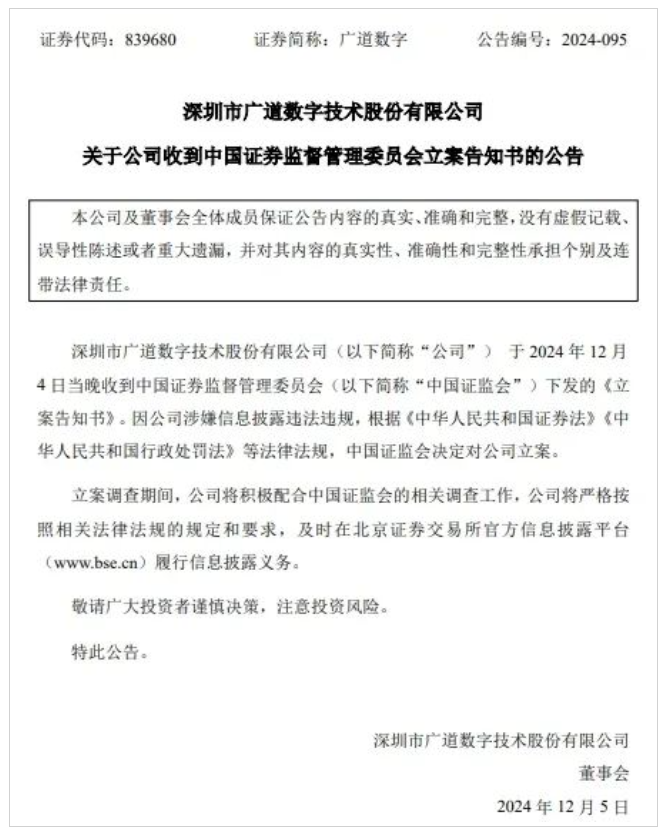 图 9 广道数字因询证函造假被退市(来源:东方财富网)