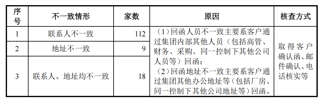 收入验证本就没有大面积覆盖,而函证结果更是让人“大跌眼镜”,出现包括“收件人和寄件人地址不一致、发函地址和回函地址不一致、确认金额不一致”种种情况。