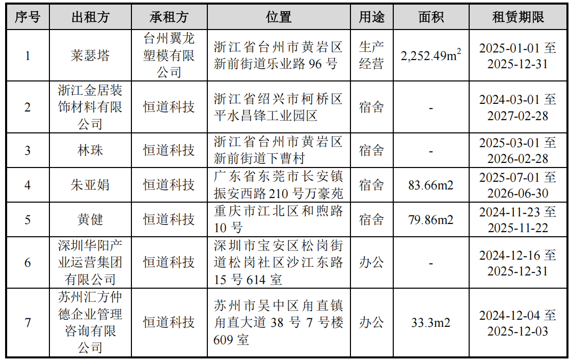 台州翼龙塑模以及同一地址注册成立的模具厂商,是否是恒道科技的客户呢?它们与第一大客户浙江永明模具又有什么关系呢?恒道科技向浙江永明销售产品是否真实呢?翼龙塑模租赁莱瑟塔的厂房究竟作何用途?