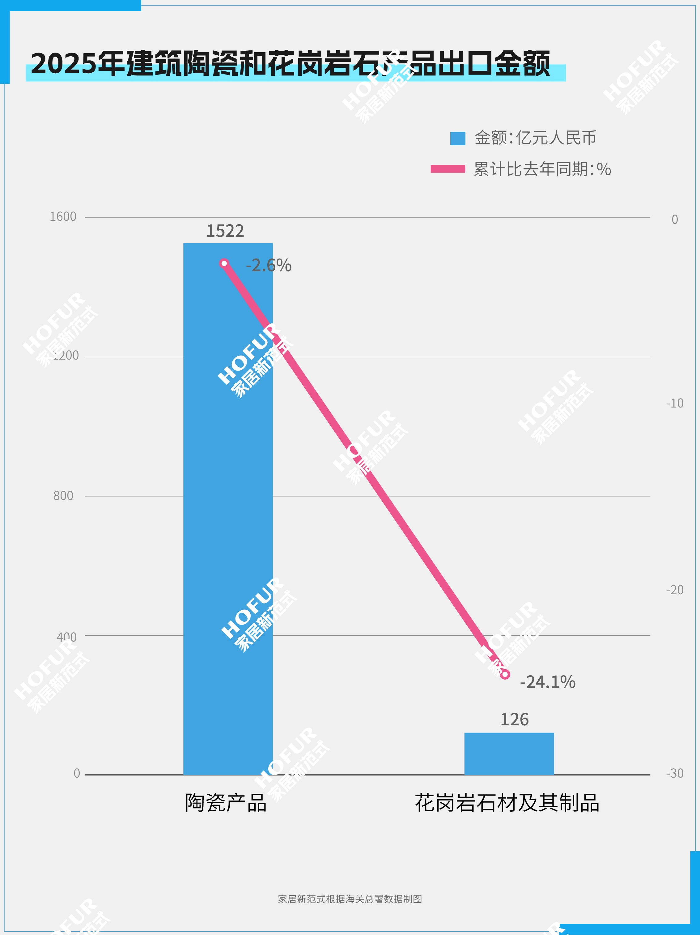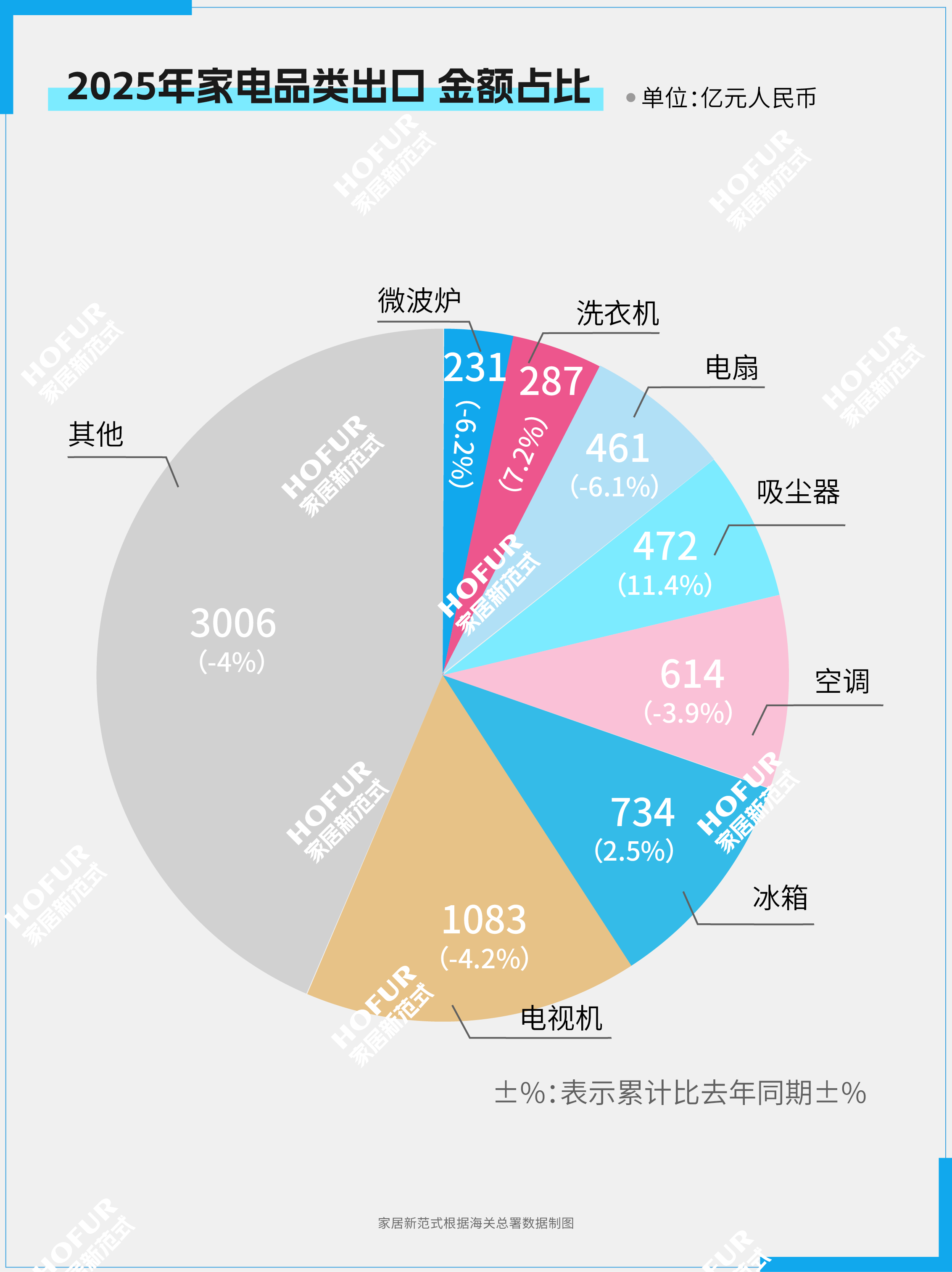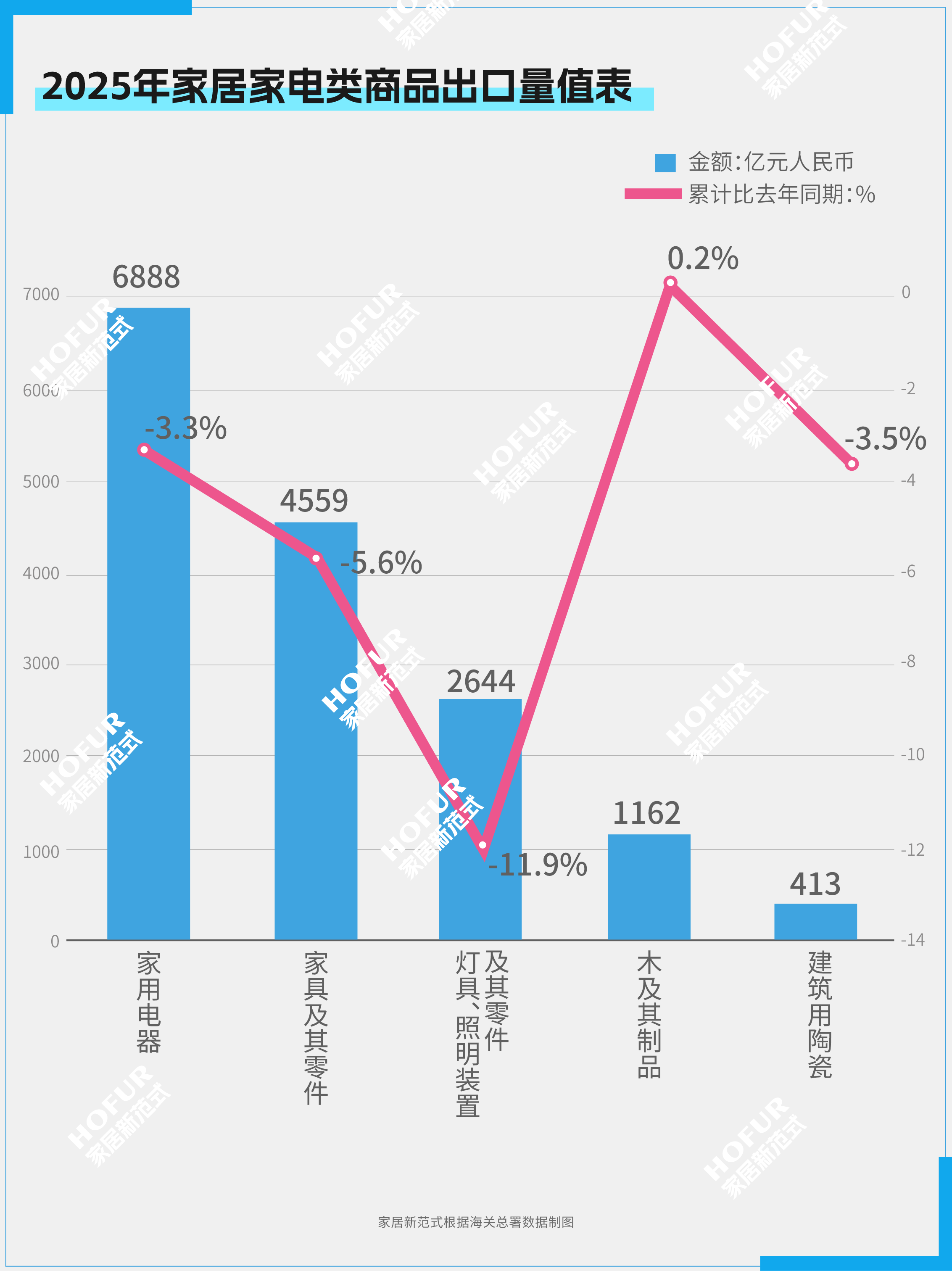 家电📺、家具🛋️、灯具💡、建筑陶瓷🪨的出口额分别下降3.3%、5.6%、11.9%、3.5%;