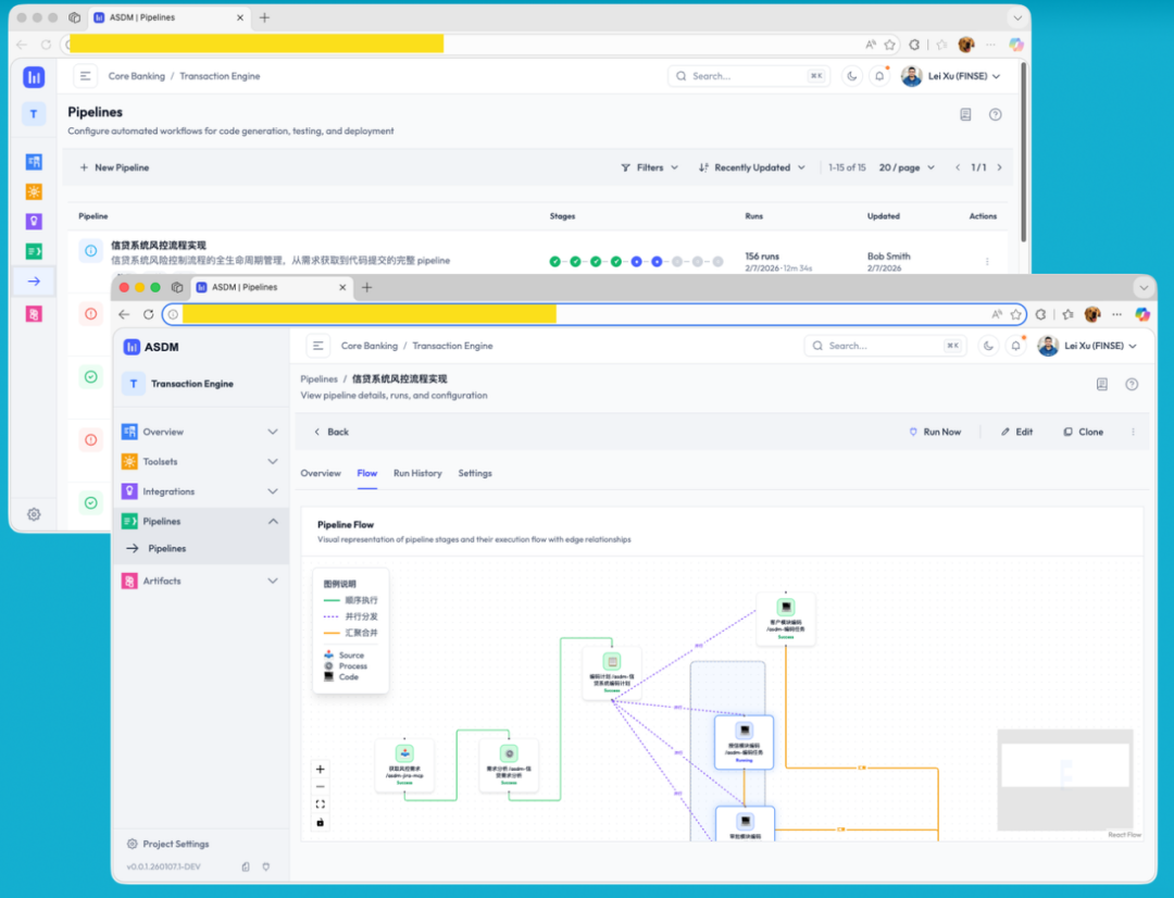 为此,软通动力推出的ASDM平台(AI-First System Development Methodology & Platform)——一个以“AI优先”为方法论核心、专为大型企业研发团队量身打造的智能化研发基座。目前,ASDM已在某国际大行、国内多家大型股份制银行、大型能源企业及数家保险企业落地,签约金额近亿元,覆盖金融核心交易、能源调度等高敏高规场景。