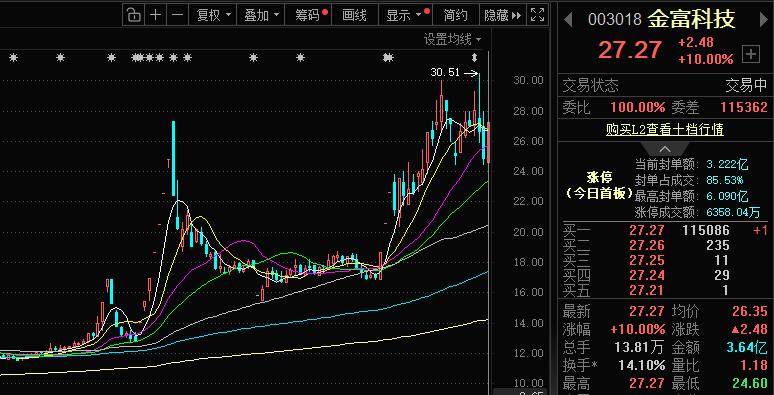 广东蓝原科技正是这一赛道的受益者,而金富科技也敏锐地发现了这一点。如果能够从低毛利传统包装,切入高增长、高毛利的AI算力基础设施赛道,不仅能为金富科技谋求一个更有前景的未来,还能够更新市场对公司的认识,提升估值溢价。行情显示,收购消息一出推动金富科技11月24日至12月2日实现7连板,股价最高至27.31元。