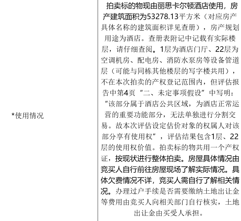 根据拍卖信息,标的物所有人为成都富力熊猫城项目开发有限公司,该标的现由成都丽思卡尔顿酒店使用,房产建筑面积53278.13平方米。
