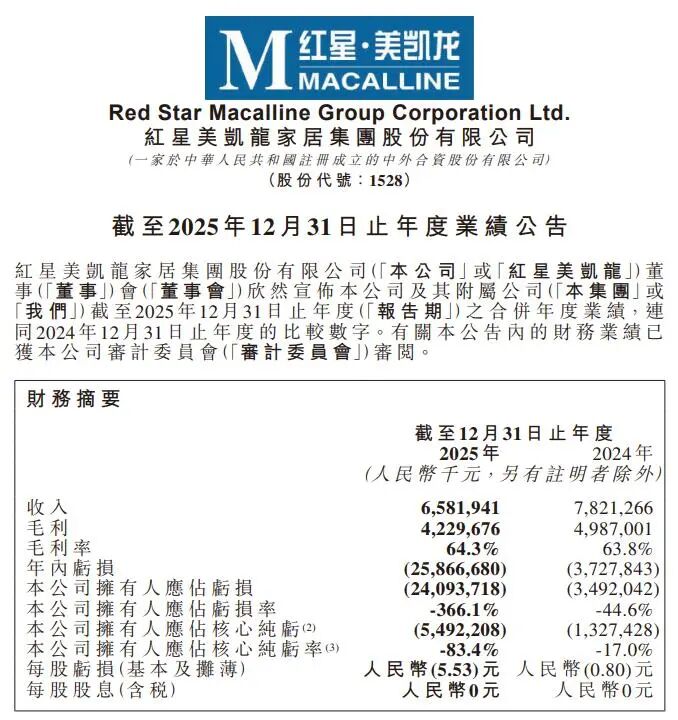 3月31日,港股皇朝家居发布2025财年年报。2025年公司实现营业收入3.81亿元人民币,同比下降27.50%。本公司拥有人应占亏损6.17亿元人民币,亏损同比扩大80.27%。