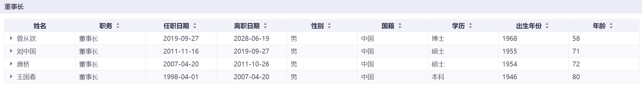 贵州茅台现任管理层以及历届变动情况